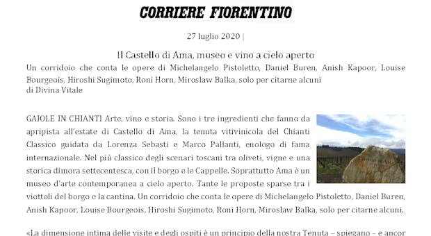 In amongst the 18th century buildings and vineyards at Castello di Ama, you’ll discover striking modern sculpture. Disruptive and disarming, the art and wine of this Chianti Classico estate is at the cutting edge. Sophie Thorpe spoke to CEO Lorenza Sebasti and winemaker Marco Pallanti to find out more.