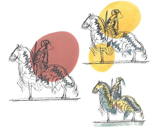 Since the winery's founding, the knight Guidoriccio da Fogliano as painted by Simone Martini has stood out on our wine labels, stylized and graphed by the painter Gian Carozzi (1920 - 2008).