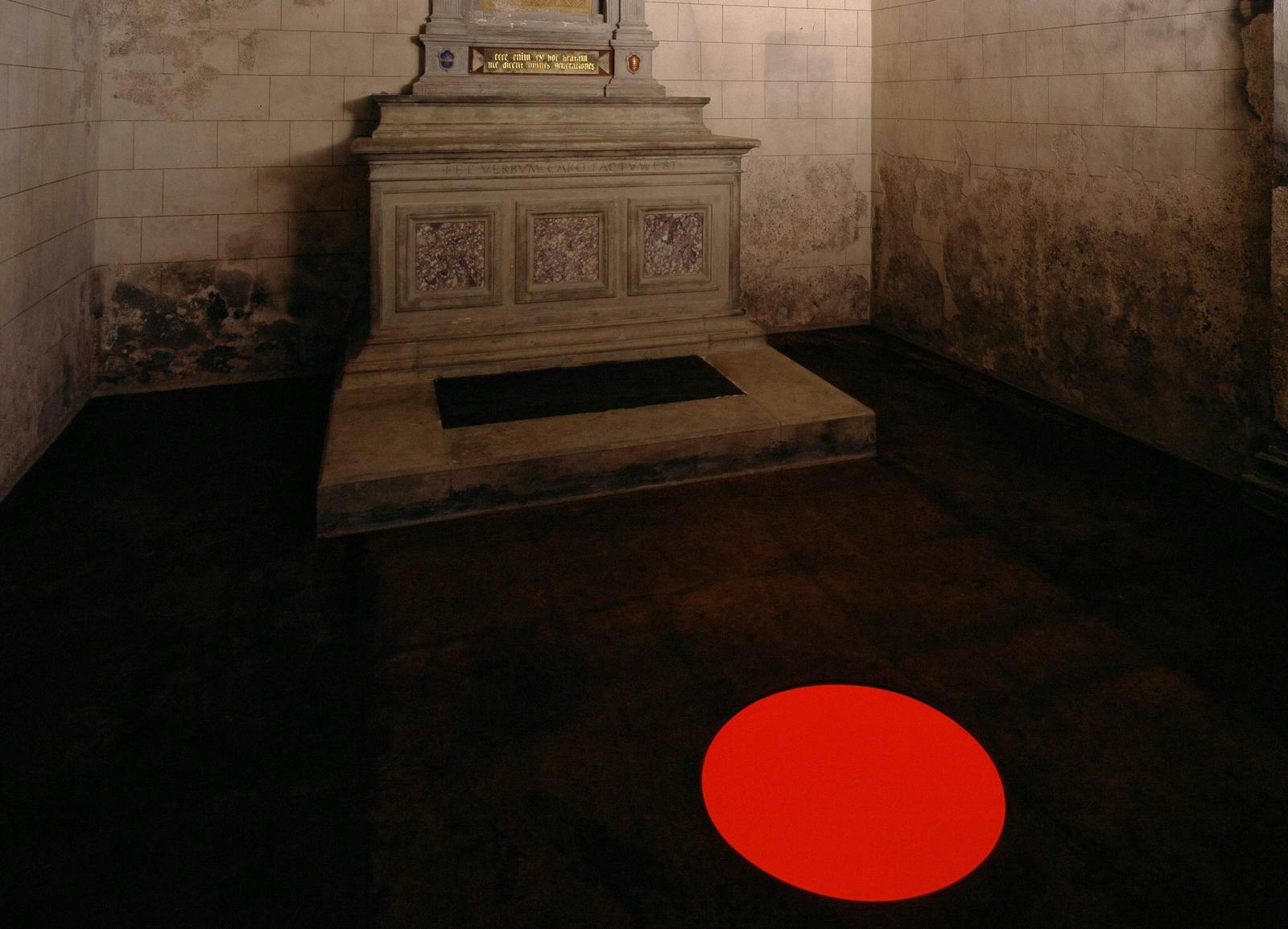 […] In the little chapel of the Castello di Ama, a luminous circle opens up in the center of the floor, a small bright chasm. Fire and light. Precious substance, as indefinite as it is deceptive, and a certain effect: <<A thing exists in the world because it has mythological, psychological and philosophical coherence.”, says Kapoor in conversation with Homi K. Bhabha and adds: <<That is when a thing is truly made...>>.