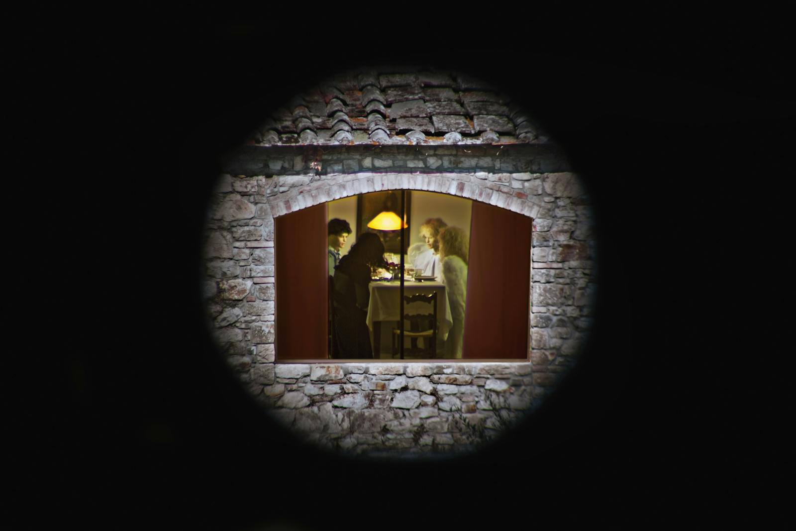[…] In “The Observer” (2010) the Artists guide the viewer through a telescope, placed in a wooden hut under the pines. The telescope is pointed at the window of a distant isolated house. There are people and... angels sitting at a table; they don't expect our gaze, they are seraphic like angels.