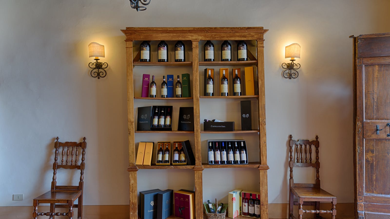 L’Enoteca, situata in Villa Pianigiani, una delle due ville tardo settecentesche del borgo, offre la possibilità di degustare ed acquistare i grandi vini di Castello di Ama, e non solo. L'occasione per scoprire la storia e la cultura di un luogo che da sempre mostra la sua straordinaria vocazione alla produzione di vini di eccellenza.