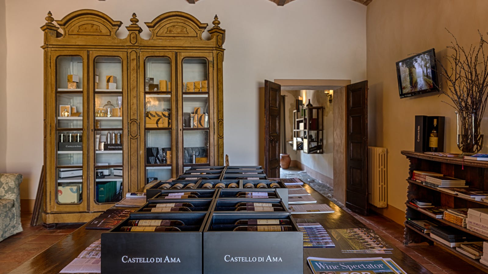 L’Enoteca è aperta tutti i giorni con orario dalle 10.00 alle 19.00 e si trova al piano terra di Villa Pianigiani, all’interno del borgo di Ama.