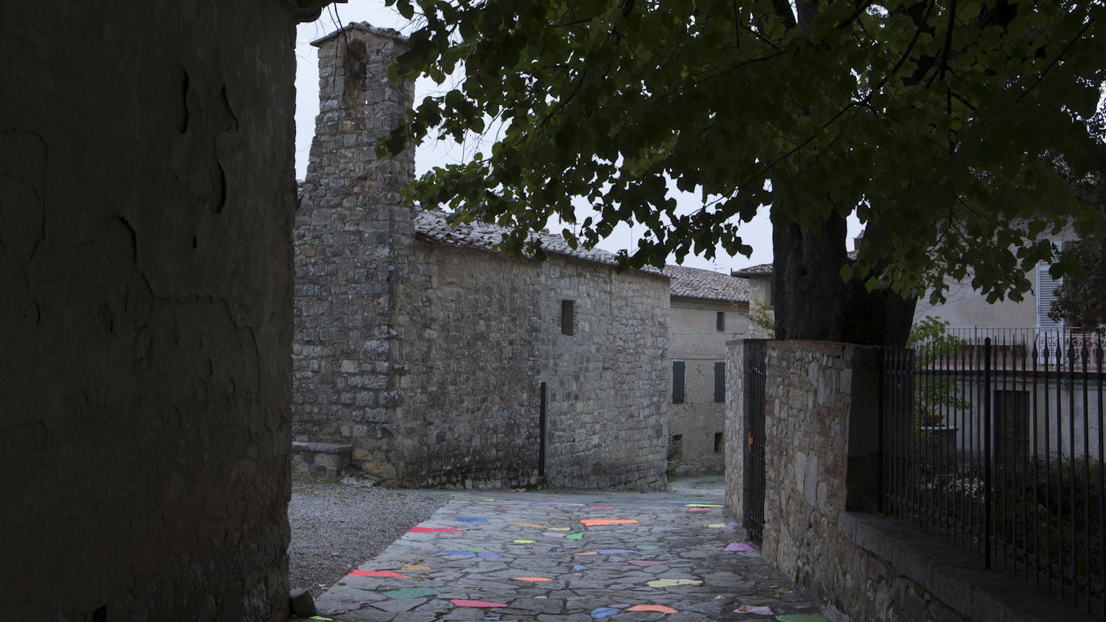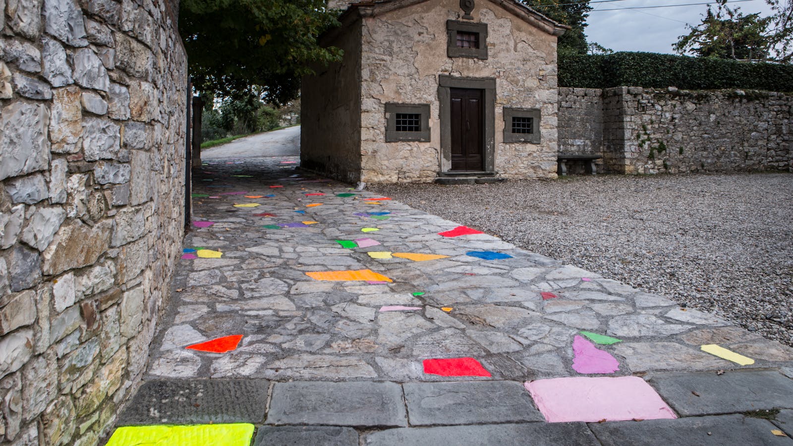 […] Al Castello di Ama, PMT è guidato dai suoi sensi. Va avanti e rimembra i momenti passati, le amicizie e gli esseri incontrati. Si tratta quindi dell’essere. Della sua capacità di stupirsi. PMT vuole seminare qualcosa: macchie di colore, come quelle di un caleidoscopio sfavillante posato sotto i nostri piedi. Macchie di colore che schizzano il sentiero e permeano la terra. Colori e luci: è sempre il momento giusto per incantare il mondo.