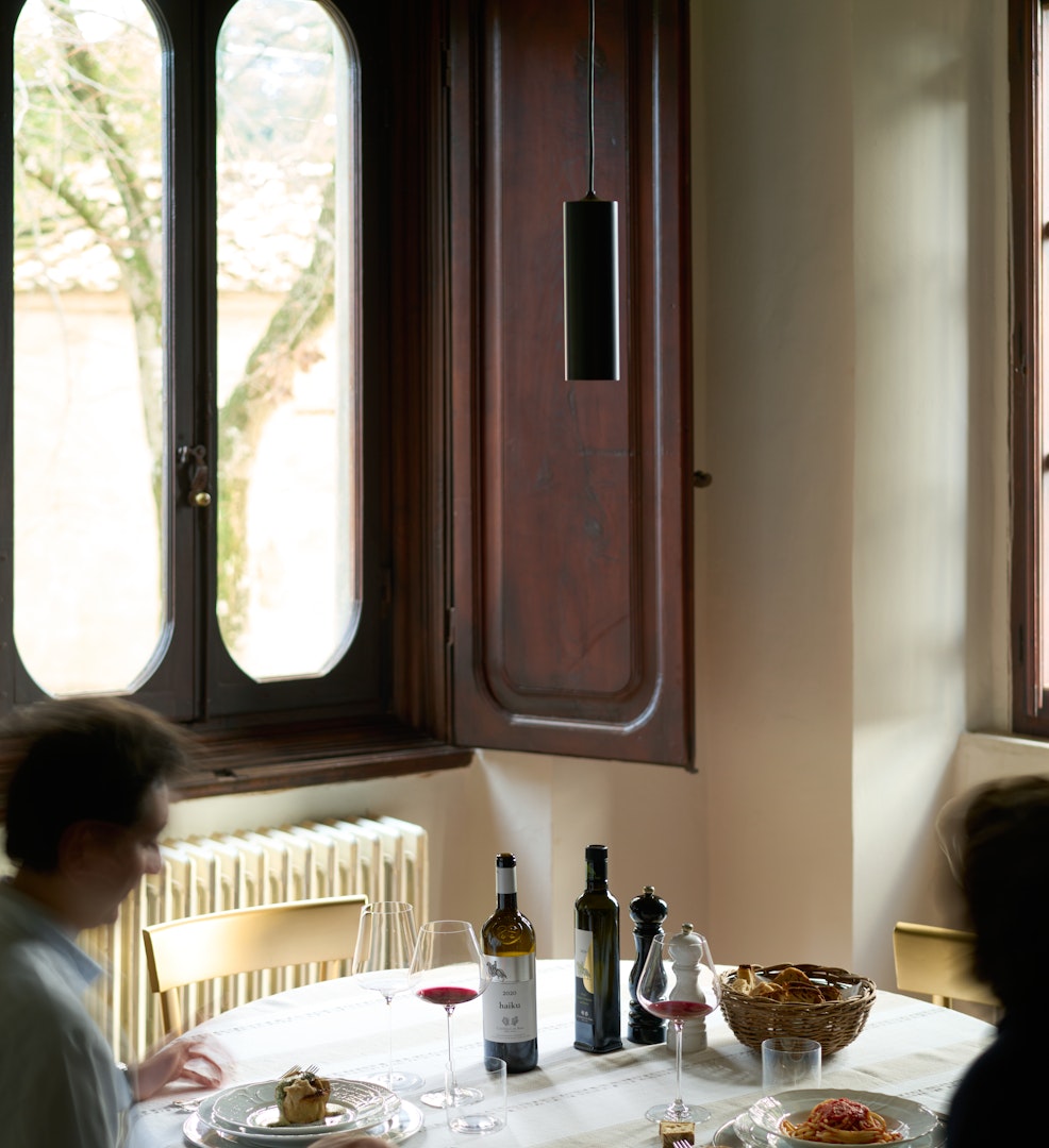 Qui il vino torna al centro della tavola e del dialogo, guidando un menù stagionale creato ogni giorno dal nostro cuoco in base ai prodotti del mercato. È un’opportunità unica per scoprire l'evoluzione del Castello di Ama San Lorenzo, il nostro vino più rappresentativo, attraverso il confronto diretto tra le annate 2015 e 2013, insieme ad haiku 2021. Con coperto, acqua e caffè inclusi, il Simposio è pensato per offrire una visione completa e senza filtri della nostra filosofia produttiva e del piacere di stare a tavola.