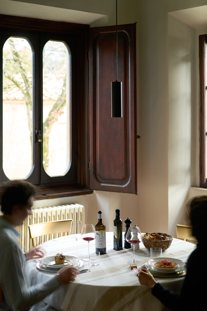 Qui il convivio celebra la maturità e la complessità dei nostri vigneti più preziosi. In degustazione, abbinati al menù stagionale creato ogni giorno dal nostro cuoco, scoprirete la profondità di una selezione vinicola di altissimo livello: dall'equilibrio di haiku 2018 e San Lorenzo 2018, fino a toccare i vertici storici della nostra produzione con le prestigiose selezioni Vigneto La Casuccia 2011 e L’Apparita 2008.