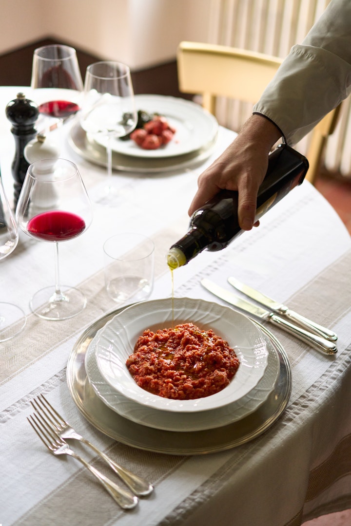 Il Convito di Villa Pianigiani è la nostra proposta più esclusiva, un’esperienza privata dedicata a chi vuole cogliere l’essenza di Castello di Ama attraverso il suo ingrediente fondamentale: il tempo. Per noi il tempo non è solo attesa, ma la cifra distintiva del nostro fare vino, un elemento che trasforma la materia in eccellenza. Il percorso inizia dall’edificio "Arca" con una visita riservata che attraversa l’azienda, le cantine e le opere d’arte contemporanea, per poi spostarsi nell’atmosfera intima di Villa Pianigiani.